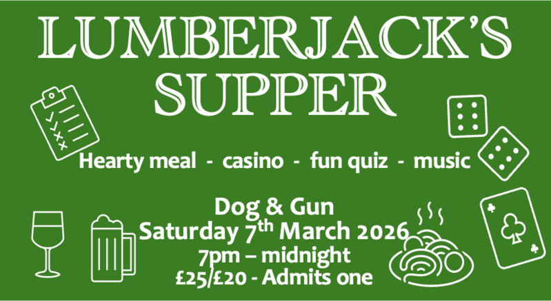 Our next supper is planned for Saturday 7th March 2026, 7pm, at the Dog and Gun, Kilby.